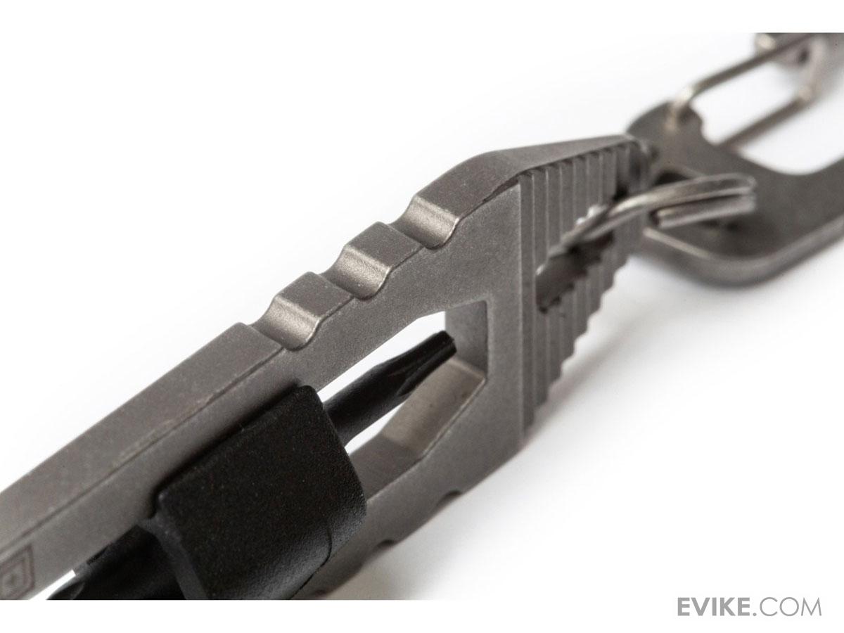 All gearheads face the same problems. Bolts and screws always work loose at the worst possible times and the right tools are never accessible. Respond with a 5.11 EDT Hex, which comes with four tip fastening options in a compact keychain carry form factor. Use the Phillips and slotted screwdriver tips for all those every day tasks, then deploy the T6 and T8 Torx heads, ideal for knife tune ups, optics, and electronic devices. The two headed bits are secured in place with ball detent feature, while the spare bit is stored in the center holder. Includes a split ring and micro Hardpoint carabiner for connection options.