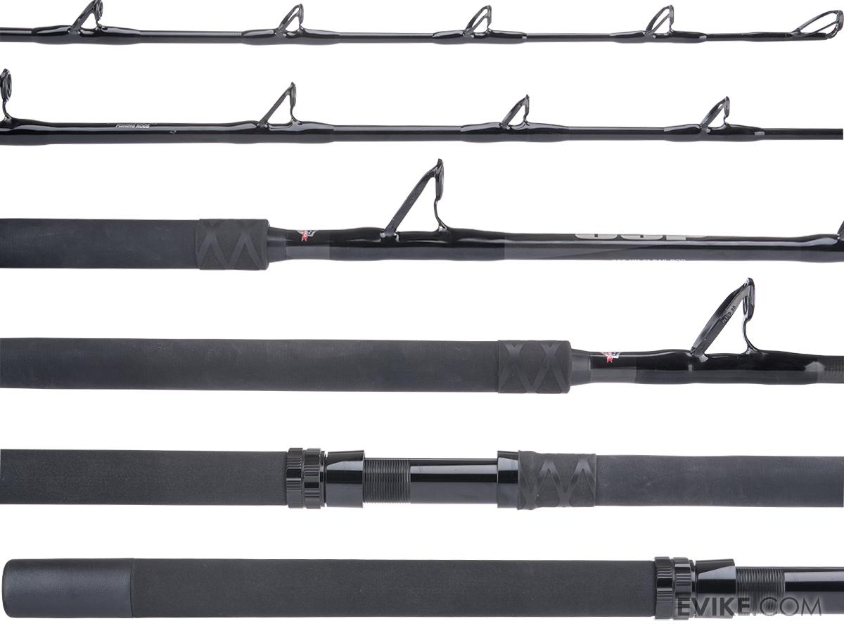 The ultimate rail rod has arrived. Built as 7™3 versions of our popular 1—3 and 2—4 rail rods, as well as two other favorites, the 6463XXXH (3X) and the 6463XXXXH (4X). These highest quality S-Glass rods provide strength and lifting power not available in competitors™ composite rail rods. Built with input from the long range fishing community, the OSP has rapidly become the go-to rail rod for the serious long range angler. The 18™ fore grip is an indestructible material that can easily withstand the damage that fishing the rail inflicts on other rail rods. The guides are Fuji BHBNG and the blank clear coated to show the material™s transition underneath. Triple wrapped in black, the rods are completely blacked out except for the Seeker logo and the iridescent OSP decal. This rod is built for the serious tuna fishermen who want to keep the pressure on big fish.