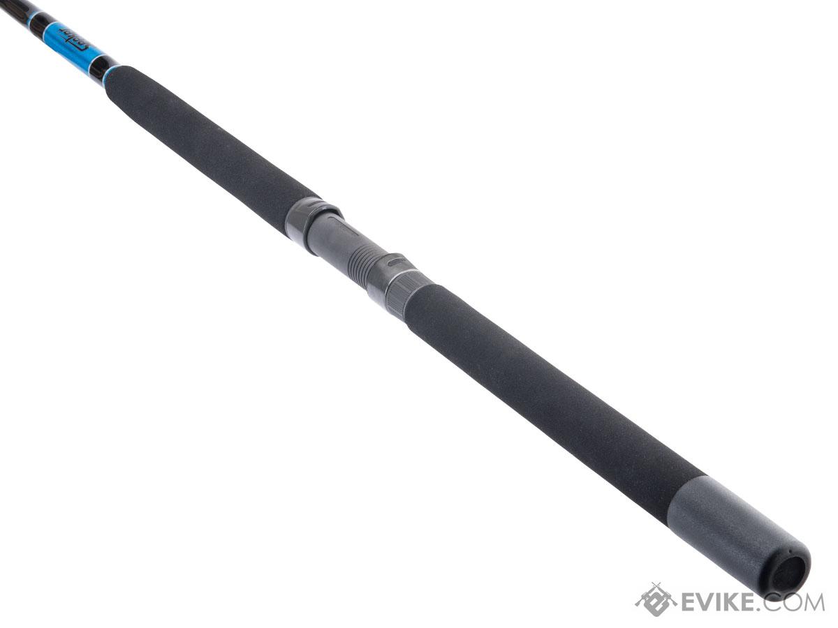 Each rod is built on a hand made blank in black. All rods feature either Fuji Graphite or Perfection Tip Co. anodized aluminum reel seats. Grips are durable hypalon. Tips are Perfection carbide or Aftco rollers. Guides are Perfection superior bright Hard Chrome or Aftco chrome rollers. All rods are double wrapped, with triple wrapped roller stripper guides, in brilliant metallic blue and black with silver trims. Rods are then hand finished with three layers of durable Classic Coat epoxy coating.