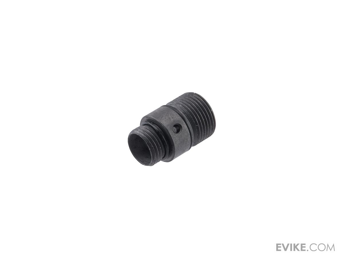 Each adapter is fully CNC machined in a single operation from free-cutting steel with smooth machined cut threads that won™t chew up the internal barrel threads and features 6mm of spacing between the threads to reduce the risk of the recoil spring guide hitting the suppressor during use.