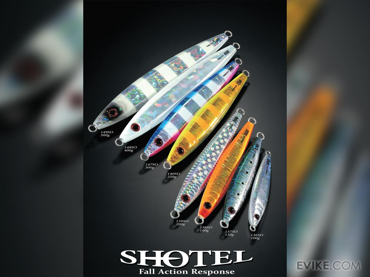 Features Realistic colors and patterns mimic baitfish to entice even the most picky of fish Lifelike eyes built into the jig Ideal action during fast and slow pitch Cradle fall action that entices fish to bite The "Shotel" is a jig that can be called a thick "lance". The cradle fall action when the hook is set, allows for back and forth motion triggering fish to bite. The "Shortel" jig uses a cradle fall motion as a weapon and makes a nervous target bite with a small silhouette in shallow water. In deeper water, the extra thick body suppresses the influence of the lead and main line, and the cradle fall is easy to sustain.