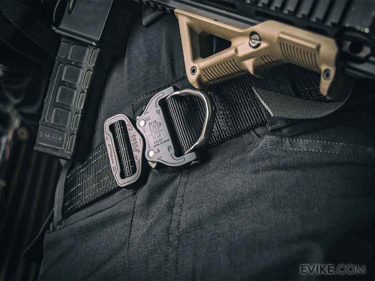 The Condor Cobra® PRO Belt is the durable and ergonomic solution for your load-bearing needs. It is equipped with the patented AustriAlpin® Cobra® Buckle system that gives you up to 2,000 lbs. of tensile strength with a quick-release capability. Along with the buckle, this belt is equipped with the COBRA® D-Ring that meets ANSI and CSA standards. The belt itself is made from extremely durable 1.75" nylon webbing with up to 7,000 lbs. of tensile strength. The belt ends are resin-treated to prevent premature fraying and durability even with heavy use. This Condor Cobra® PRO belt is also five-row stitched to prevent sagging while you wear it, even with a heavy load. It's made right here in the U.S. and ready to assist in load distribution so you can perform at your peak in the field.