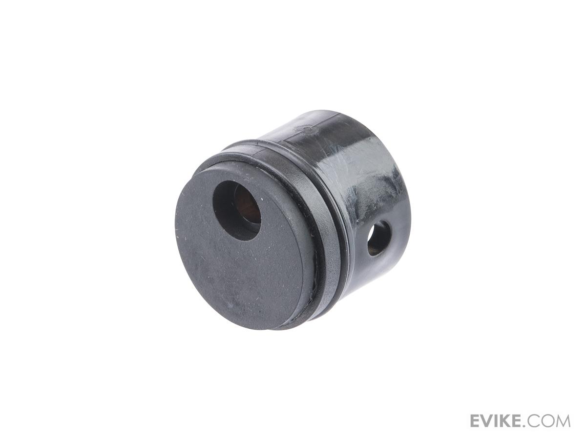 The KRYTAC Cylinder Head is a hybrid construction of metal and polymer. It features an o-ring around the body to prevent air from leaking between the cylinder head and the cylinder. The KRYTAC Cylinder Head also features a dense rubber pad on the back to absorb impact from the piston and reduce vibration.