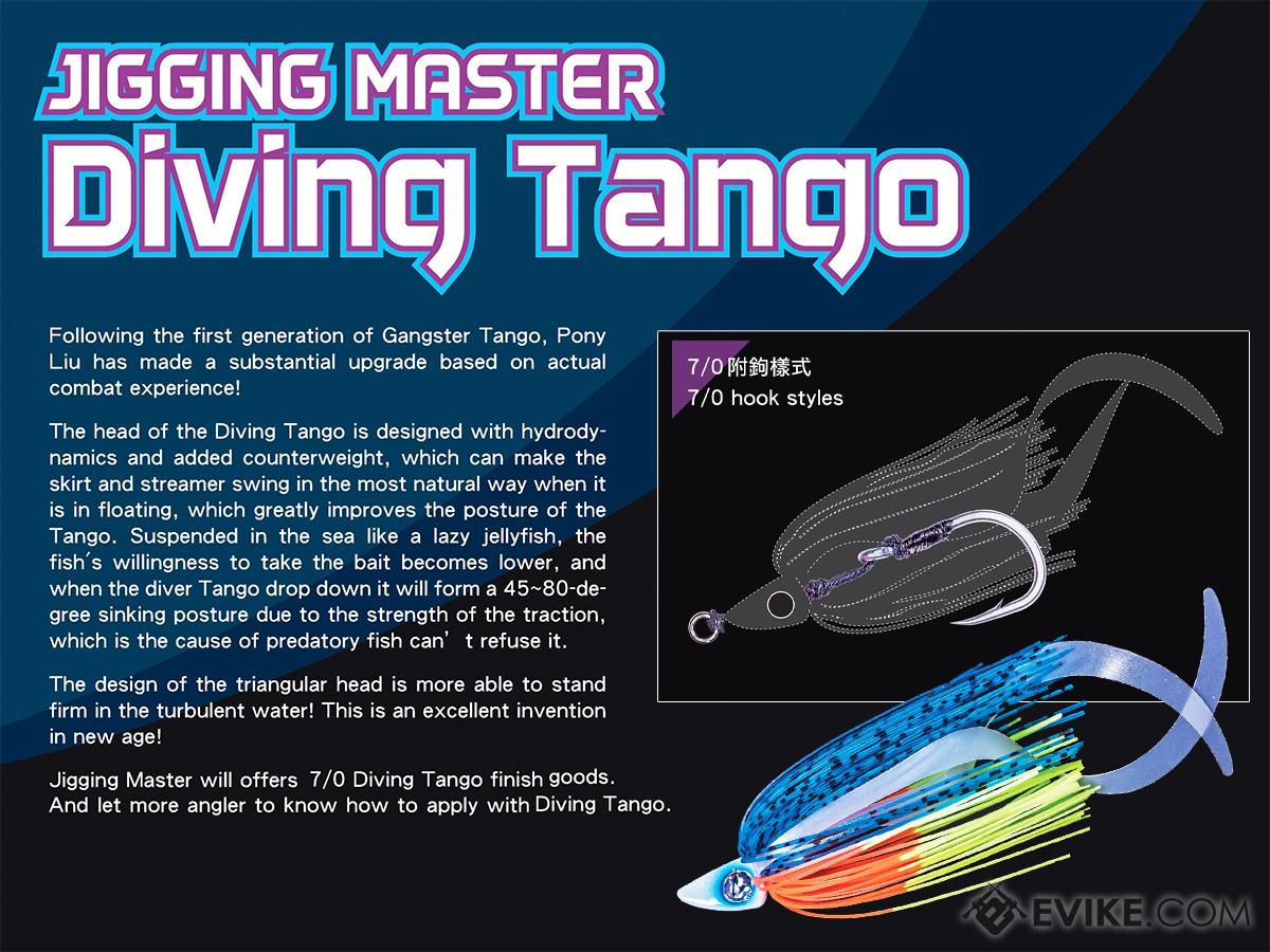 The Jigging Master Diving Tango following the first generation of Gangster Tango, Pony Liu has made a substantial upgrade based on actual combat experience! The head of the "Diving Tango" is designed with hydrodynamics and added counterweight, which can make the skirt and streamer swing in the most natural way when it is in floating greatly improving the posture of the Tango. Suspended in the sea like a lazy jellyfish, the fish's willingness to take the bait becomes lower, so when the Diver Tango drops down it will form a 45 to 80 degree sinking posture with the strength of the traction making it hard for predatory fish to resist! The design of the triangular head is more able to stand firm in turbulent waters!