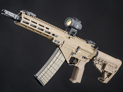 "This gun is really good, i got the 8.5 m-lok with suppressor. Make sure you get it on sale for 199. The only cons I've got are that the stock wobbles a bit, and sometimes pulling back the bolt to adjust the hop up actually moves the hop up. Also, one thing I noticed is that it may look like you have 4 m-lok slots on the sides of the hand guard, but you really only have the 2 closest to the magwell. This is because the suppressor blocks the m-lok screws from going in all the way. You can kinda still use the 3rd mlok slot, but that one still has a small portion of the suppressor blocking it right at the end so you'd have to offset your accessory somewhat to the middle of the slot. There is a pin in the suppressor and looks like it could maybe come off, but you'd probably have to disassemble the whole handguard which could be more trouble than its worth. The inner barrel goes all the way up to the end of the suppressor so if you were thinking of replacing it with a tracer unit it wouldn't work on account of the inner barrel covering the bbs from the lights. You'd have to get an outer barrel extension of some sort and again it might all me more trouble than its worth.