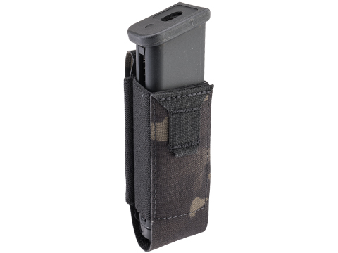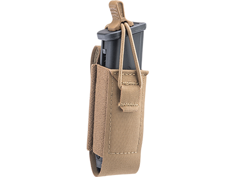 The Single Pistol Mag Pouch (SPMP) is designed to be adaptable for a wide variety of handgun magazines and multi-tools. For additional retention the shock cord can be utilized when conducting airborne operations. The back of the pouch is cut to allow for 0.5" vertical adjustments when mounted to a belt. The pouch is constructed of Squadron Laminate, with woven elastic webbing and Slip-Not Dots.