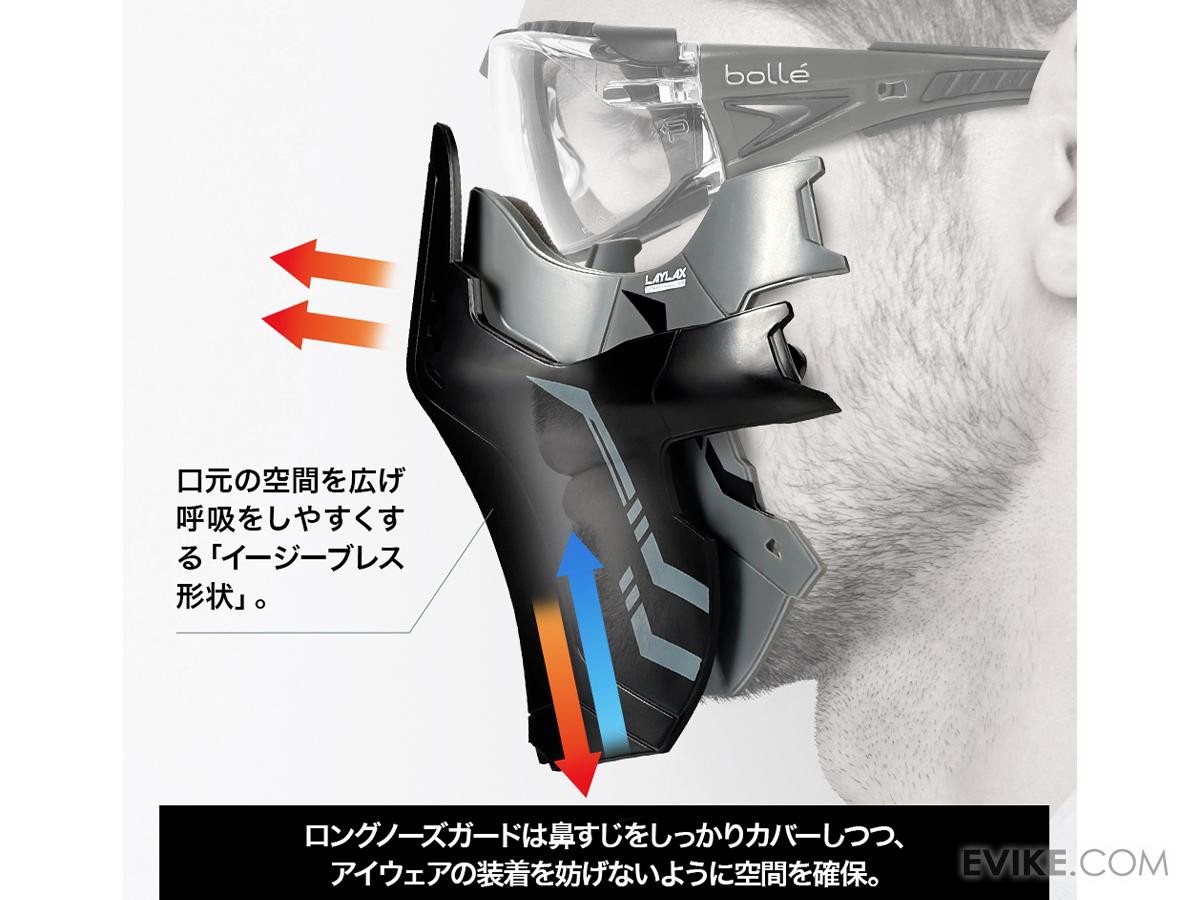 • Long nose guard allows easy breathing and enough space for most eye protection