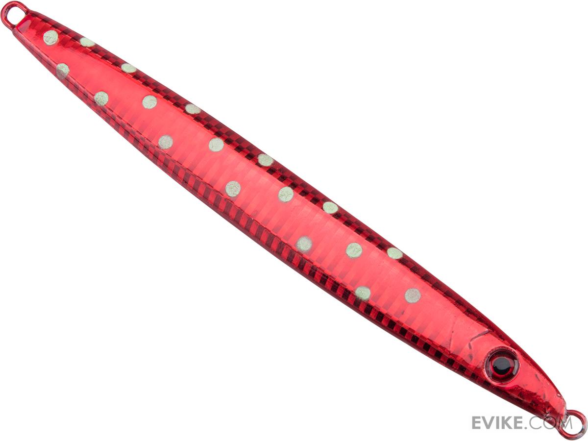 The slender shape allows the jig to fall to "the ZONE" quickly. When the jig hits a current the jig swims horizontally which looks like live bait fleeing. The jig gets bit on the fall as well as on the retrieve using a pump and wind method.