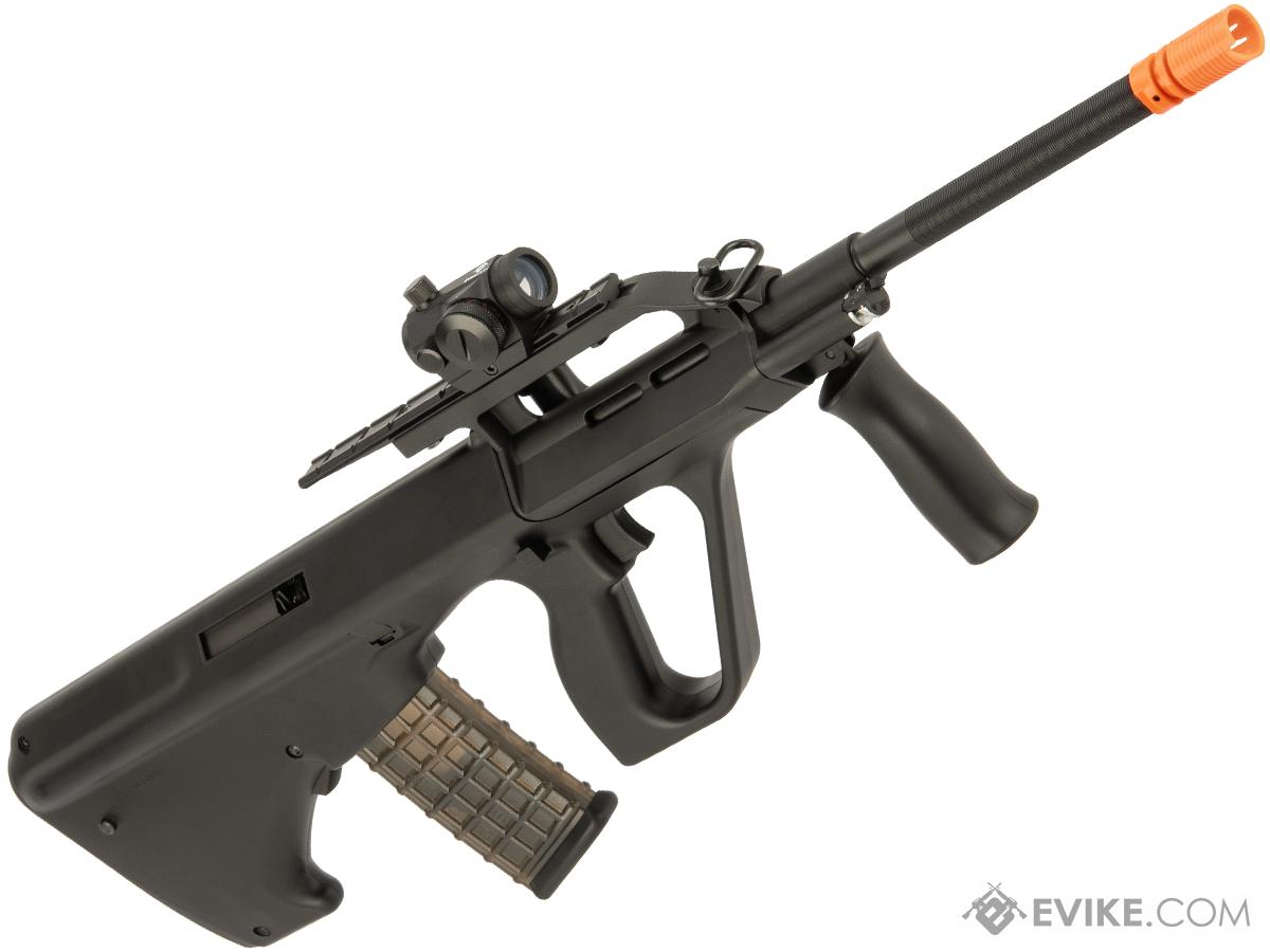 • Built-in AUG carry handle with 20mm compatible rail. Spacing of rail may not accept certain optics