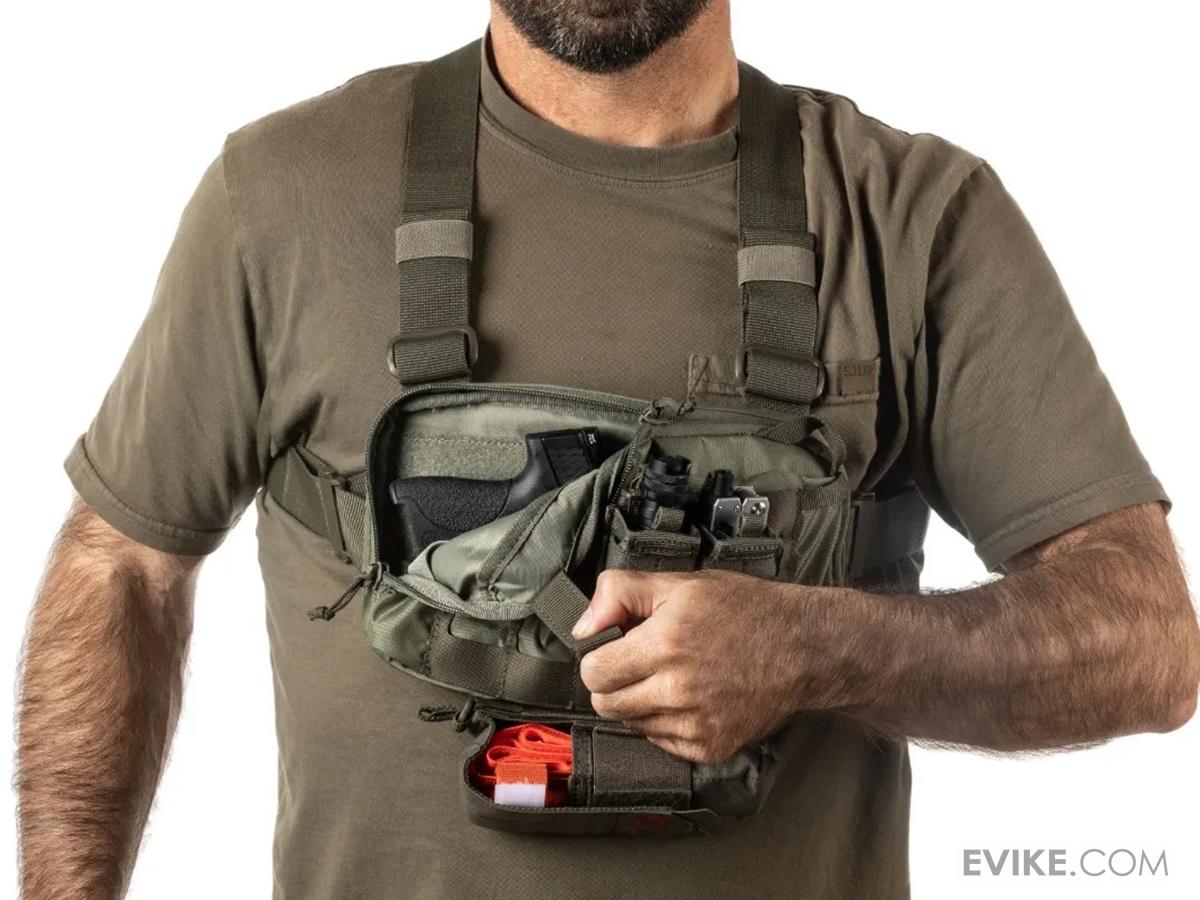 When it hits the fan, be ready with the Skyweight Survival Chest Pack. Weighing only .27 kg., this survival pack's one-liter capacity will keep your most critical tools at hand. The quick-release harness system is adjustable and versatile. When removed, the pack can be used as a standalone or as a waist pack. Hot pulls make access to the ambidextrous CCW compartment sized for compact pistols FAST. An internal loop panel provides a mounting platform while elastic bands are available to secure items. The breathable back panel keeps you comfortable and the padded pass-through is compatible with standard belts, hip belt from RUSH® 100 backpacks or the Skyweight Hip Belt (sold separately). An external laser-cut laminate MOLLE panel allows pouch attachment, while gear loops and bottom webbing loops expand carry options. The Skyweight is the survival pack you can trust.