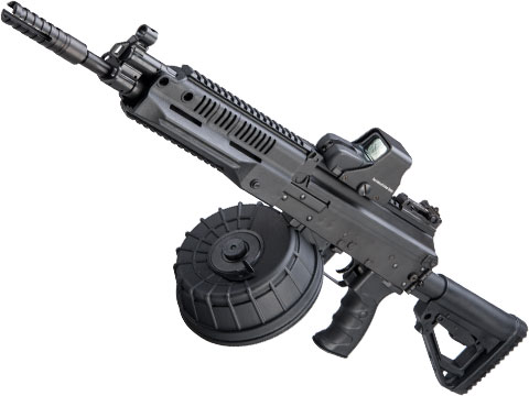 "This was my first airsoft gun, and it remains my go to. It has proven to be an outstanding piece that only continues to impress. The included drum mag feeds well. its accuracy and range are competitive for a stock gun. Most notably the external build quality is excellent. It has survived a fair share of drops with no issue. This gun has proven itself to me in extreme heat, mud, and snow. Internally speaking it seems to be on par with if not better than other stock guns. Battery compartment could be better but after some searching I found that the titan 1200mah 11.1 stick type battery fits without issue along with 1000mah matrix 7.4 stick type.