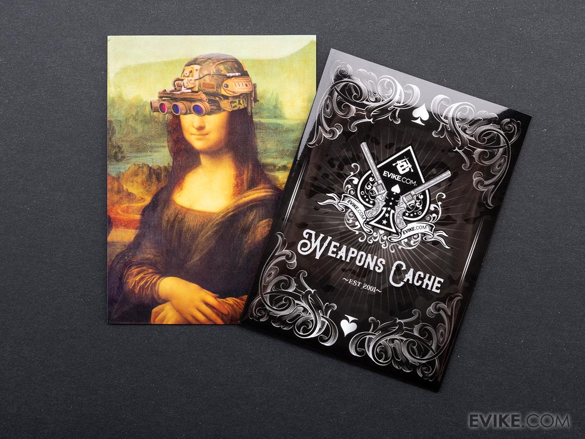 The Weapons Cache is a TCG released by Evike.com for the Airsoft Nation featuring some of the most iconic Airsoft replicas. Every edition of Weapons Cache is limited run and can only be obtained via Evike.com Online, Evike.com Outpost stores, and Evike.com marketing events at random.