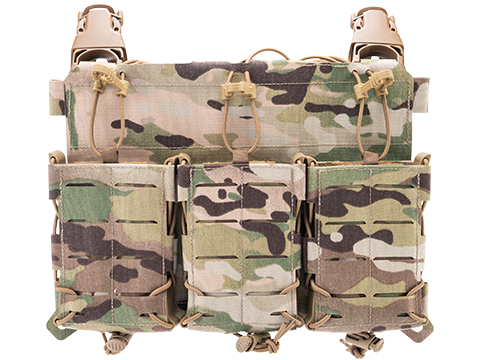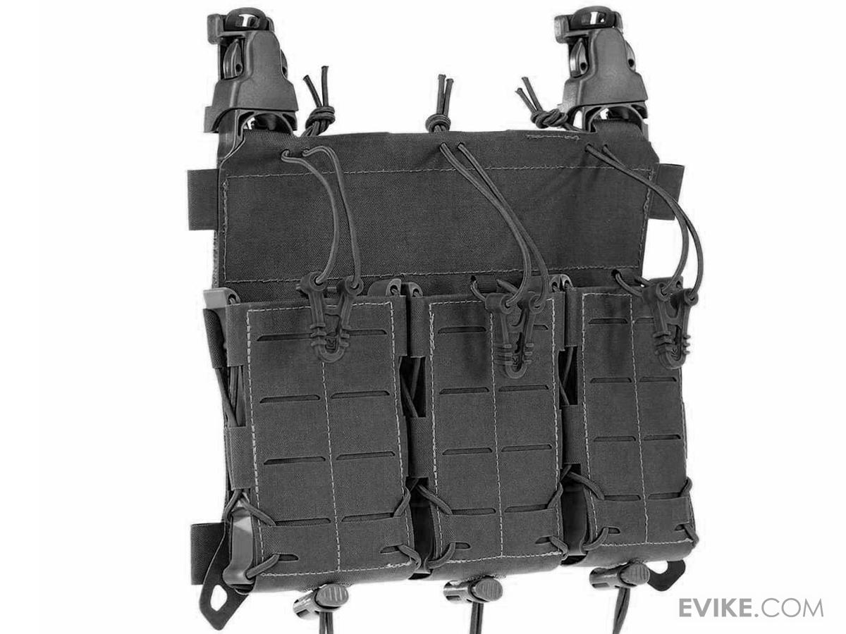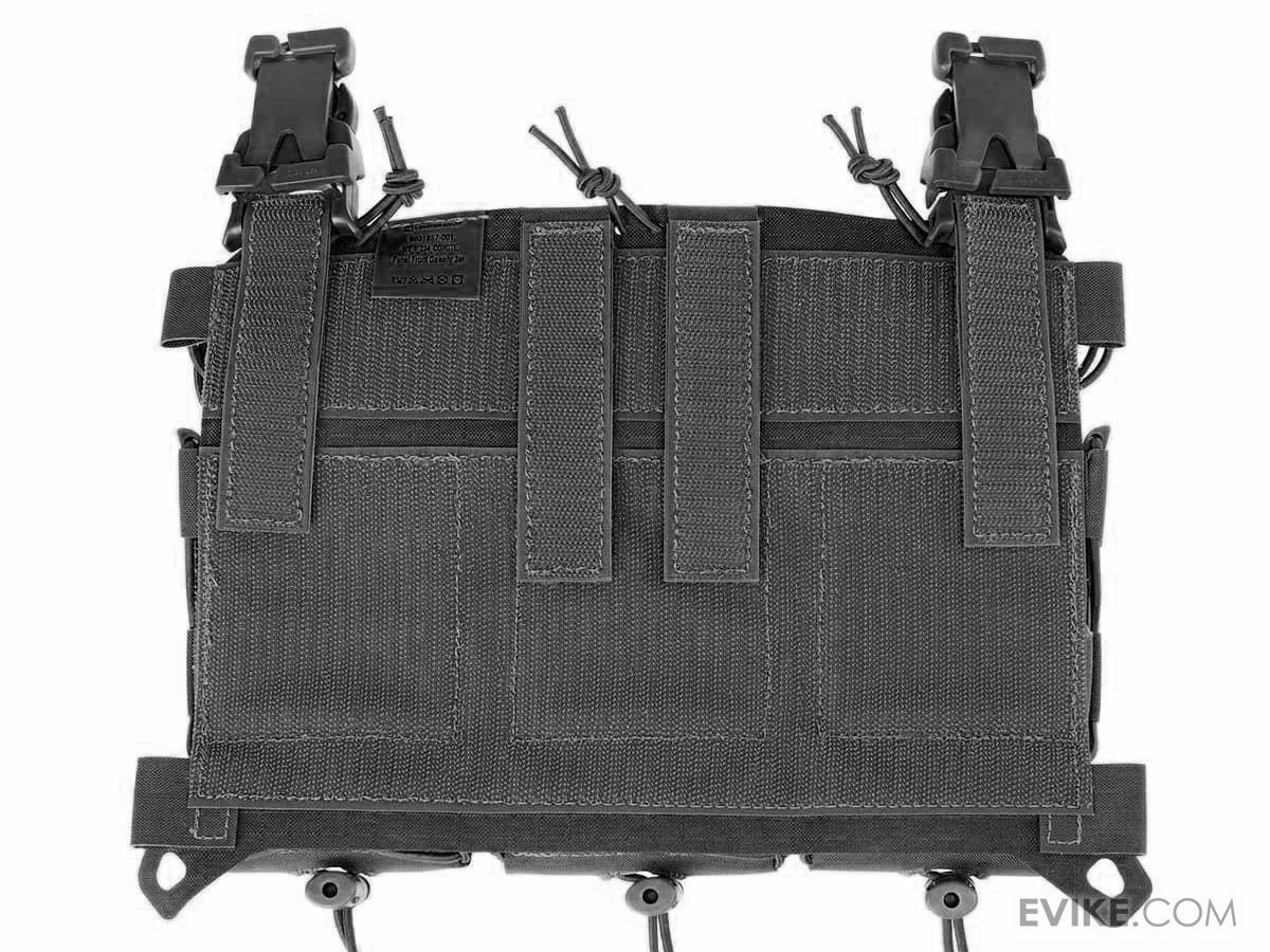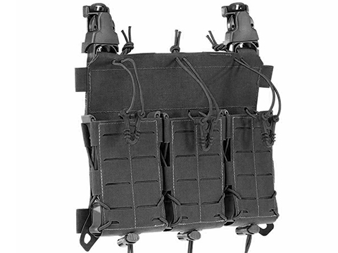 The MX234 Multi-Caliber Front Panel can carry three mags for anything from a standard AR-15 all the way up to an HK417. It attaches to your plate carrier by means of Velcro fastener and / or with the included pair of click-it-to-attach-MOLLE buckles. What's more, you can easily transform it into a fully prepared micro-rig by adding the chest rig carrying system to its clips and to the two small loops on the panel, then covering the back of the panel with its Velcro cover.