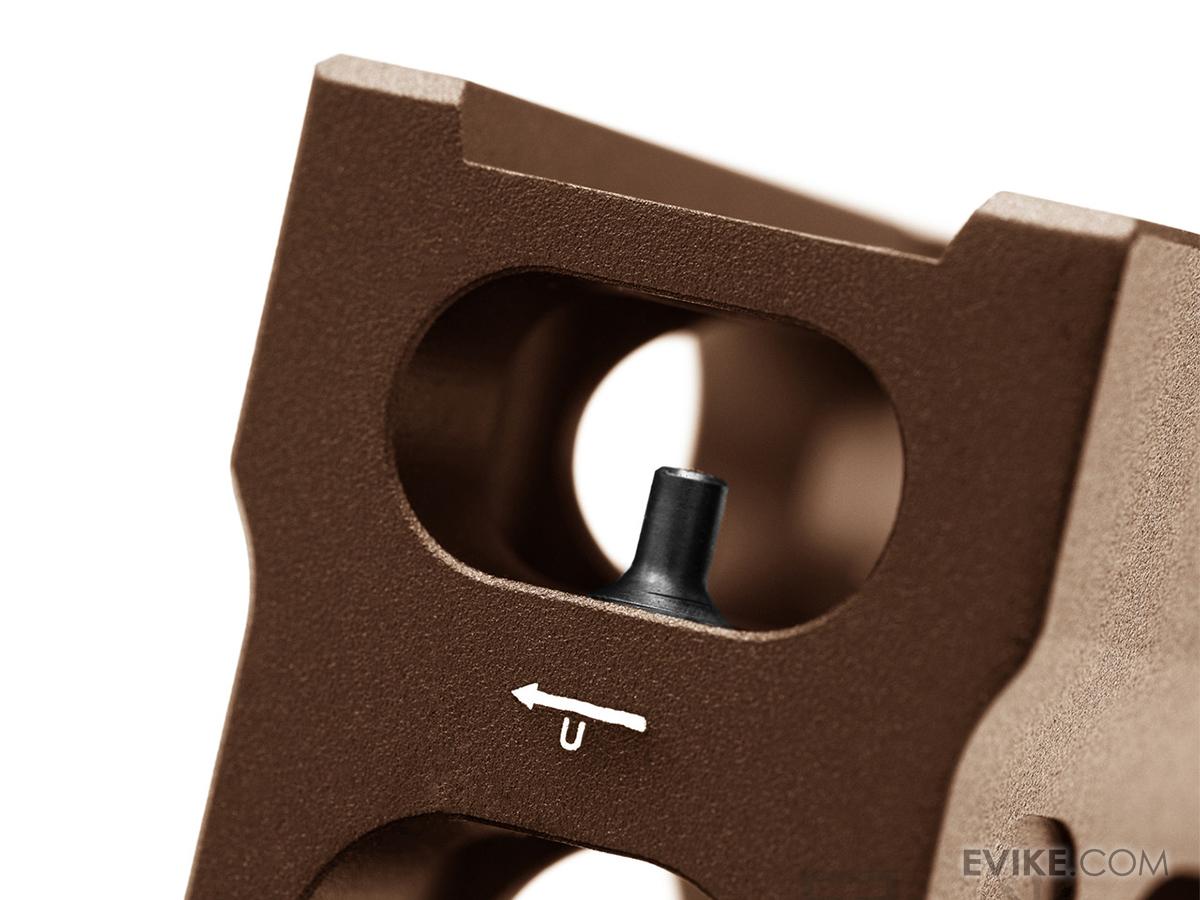 The PTS Unity Tactical FAST Micro Mount features built-in standard height back up iron sights (BUIS) that keep your airsoft gun uncluttered without reducing capability. The FAST™s built-in front/rear BUIS is perfect for backup on super short PDW/SMG platforms where rail space is critical for mounting lights and lasers. Also, the front sight post can be removed so that the rear BUIS aperture can be used with a traditional front sight such as the PTS FUSION folding front sight, creating a more conventional sight radius. Both front and rear BUIS are completely adjustable for windage and elevation.