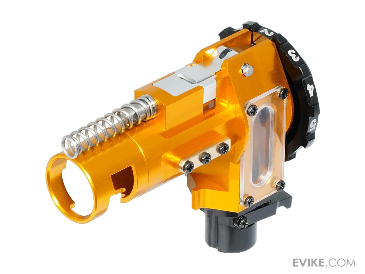 • Equipped with a new CNC Delrin Locking C-Clip design to hold barrel tight without wobbling and twisting, 3 compression springs on top, at bottom and in center of housing to ensure the hop-up unit is exactly centered, straight and air tight