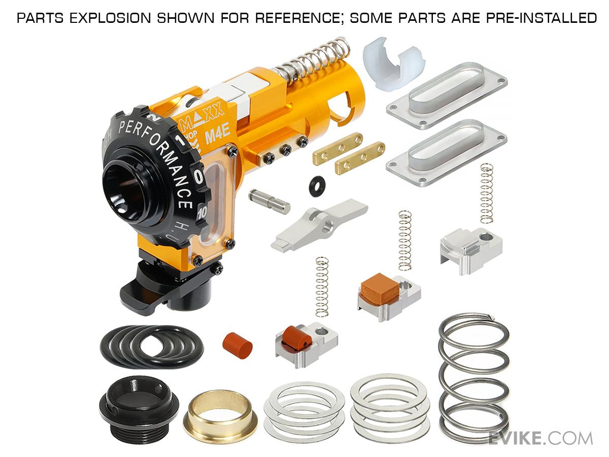 "The Maxx M4A -PRO is an excellent Hopup unit. I installed it in an Umarex HK M110 A1. I had to use a Dremel and do some heavy modification to the M110's hopup adapter (the black polymer barrel extension that interfaces the hopup unit with the barrel) in order to get it to fit, as the stock hopup unit for the M110 is very slim and aftermarket hopup units don't fit. The Maxx M4A is a high quality, aluminum chamber, with clear side windows so you can see into the chamber. It has a nice BB retention system that prevents excess BB's from falling out when you remove the magazine. Very nice feature. The M4A comes with a flat nub installed and I used that with an R-Hopped barrel patch and smooth bucking. This setup is lifting .40g BB's and providing great range and accuracy in my rifle. Highly recommended.