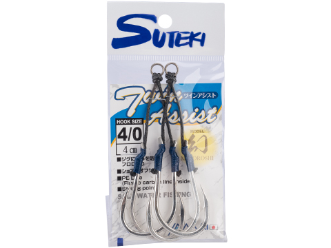 Features Heavy duty forged press steel hook construction Silver plated corrosion resistant finish Massive hook wire Powerful needle tip provides maximum penetration Barb is designed to keep fish hooked Highly durable fluorocarbon braided assist line Strong welded ring The Twin Assist hook uses two Maboroshi type hooks that has penetration and holding power to retain the fish. The hook is designed to have the best balance compared to standard hooks. The PE braided assisted line is added for an increase in tension when a fish is hooked. The line is colored black so it is invisible to the fish. Us this hook when targeting any game fish species.