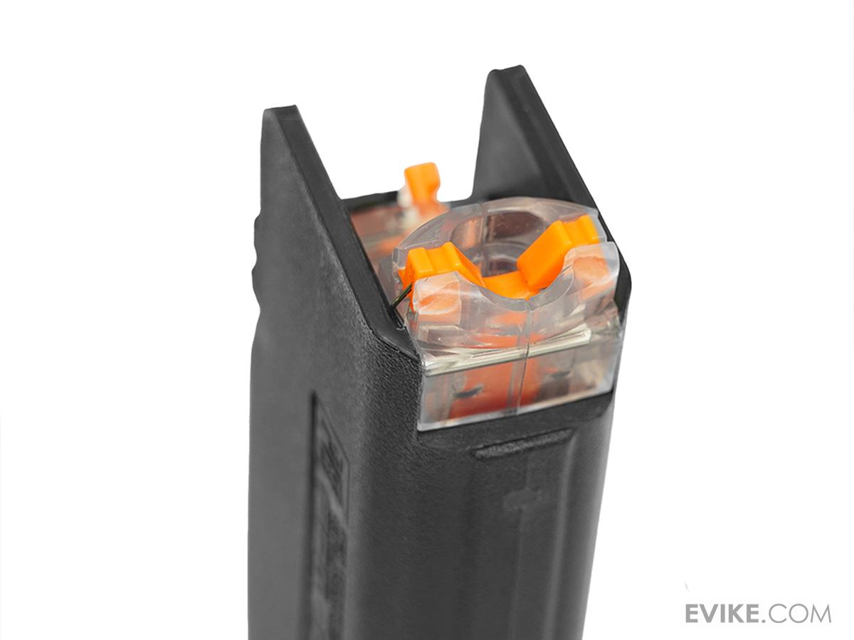 Like our EPM family of M4 magazines and the AR9 magazine, the EPM E9 magazine incorporates full load indicator to prevent overloading. When the orange follower appears in the small see-through window which is located at both side of the shell, the magazine is fully loaded.