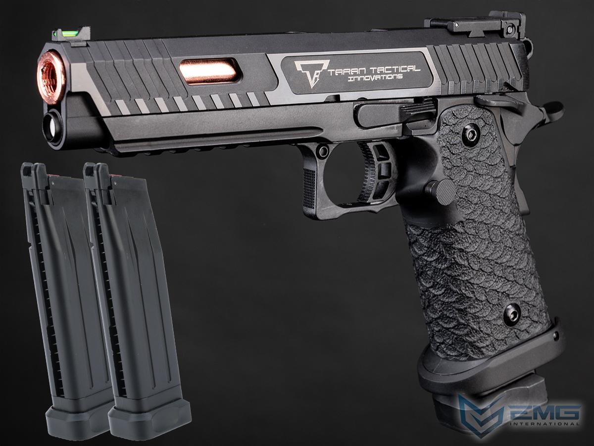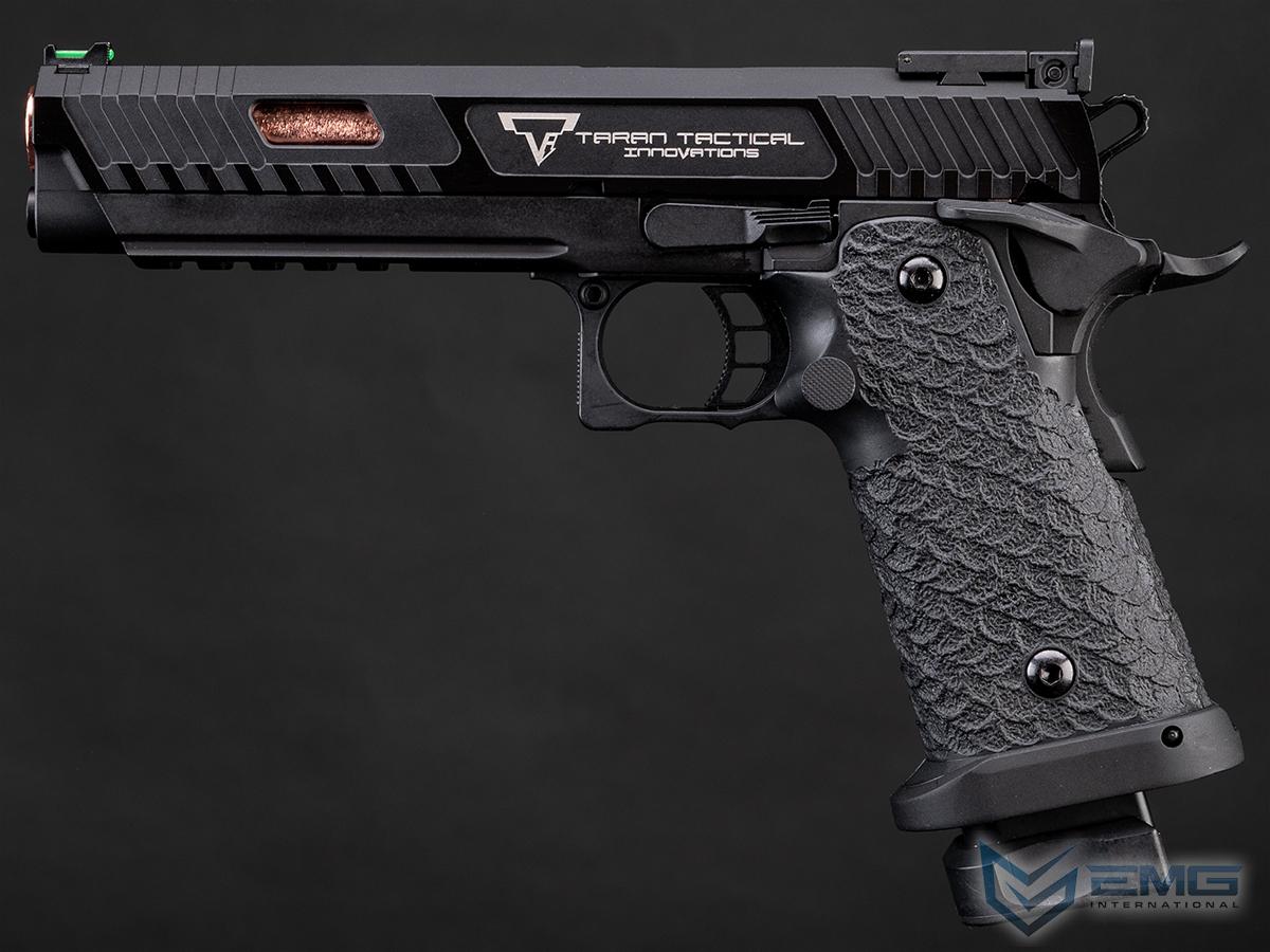 EMG is proud to announce our next collaboration project with TTI to bring highly detailed, high quality training variants of their handguns to Airsoft; we will be working very closely with both companies to ensure this is the most accurate to the real-life counterpart as possible. These handguns are exceptionally crafted to tight tolerances to mimic the look and feel to that of their real life counterparts. Expert technicians pay close attention to details in tuning to make sure the training replica feels as good and is crisp to shoot like the real thing. The trigger is ultra light and fast which compliments well to the quick cycling slide. The polymer grips are molded to resemble stippling which is an aggressive scallop style cut that are both comfortable and incredibly efficient at helping the shooter maintain a positive grip.