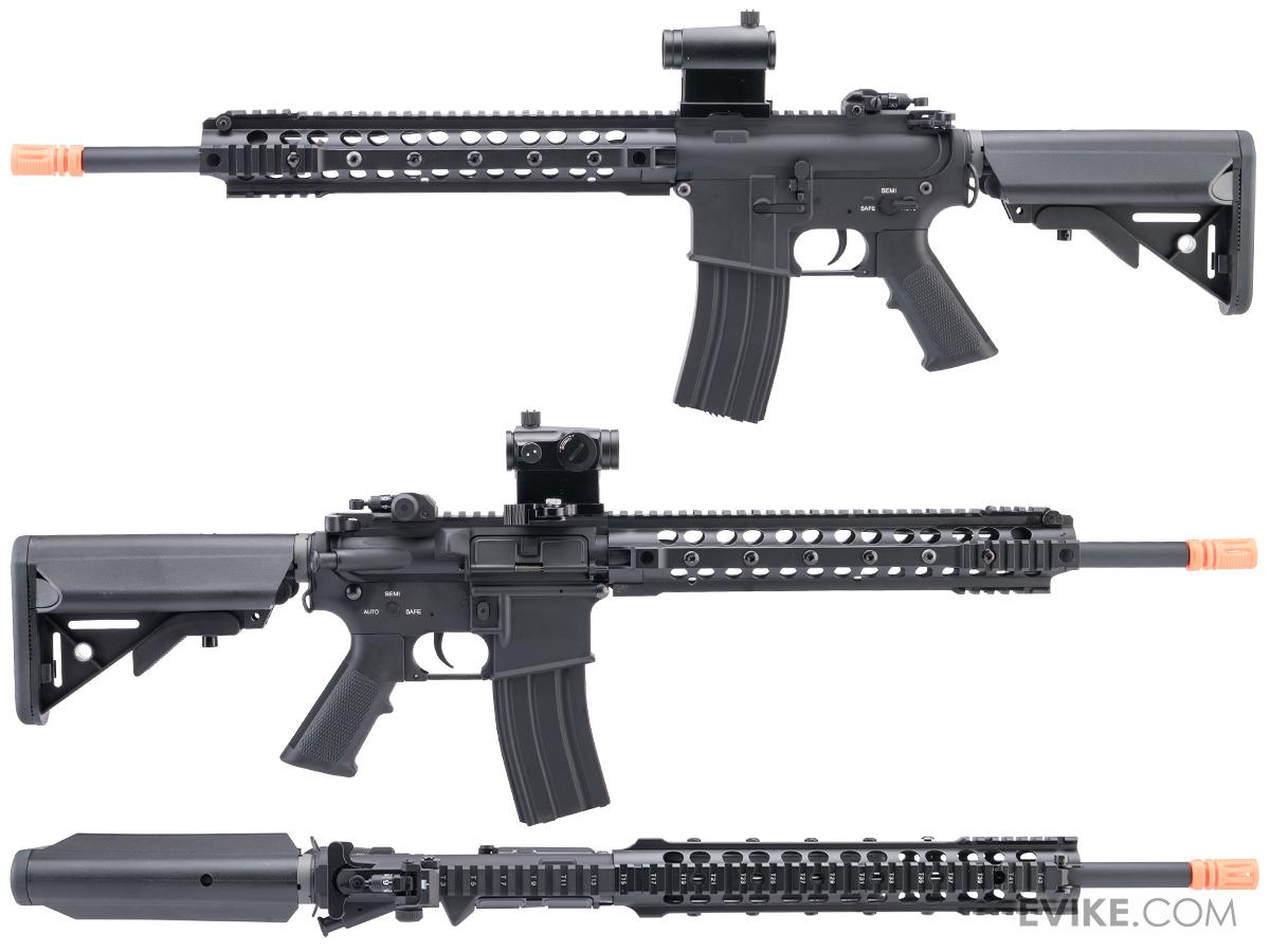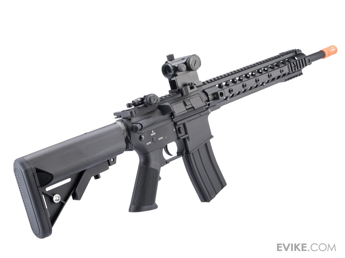 "This gun is amazing! When you first hold the gun the first thing you notice is how sturdy it feels. With a full metal build this M4 is very solid. It has a very consistent fire rate and a good amount of power. The hop-up adjustment and firing spring is very easily accessible making it very easy to adjust to new field rules. The only problem is with the magazine that comes with it; sometimes it doesn't consistently feed into the chamber. This problem is easily solved by buying another more efficient magazine.