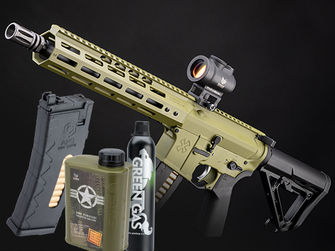 Reload package includes a spare magazine, green gas can, and 5000 0.25g BBs to keep you on the field and in the fight!