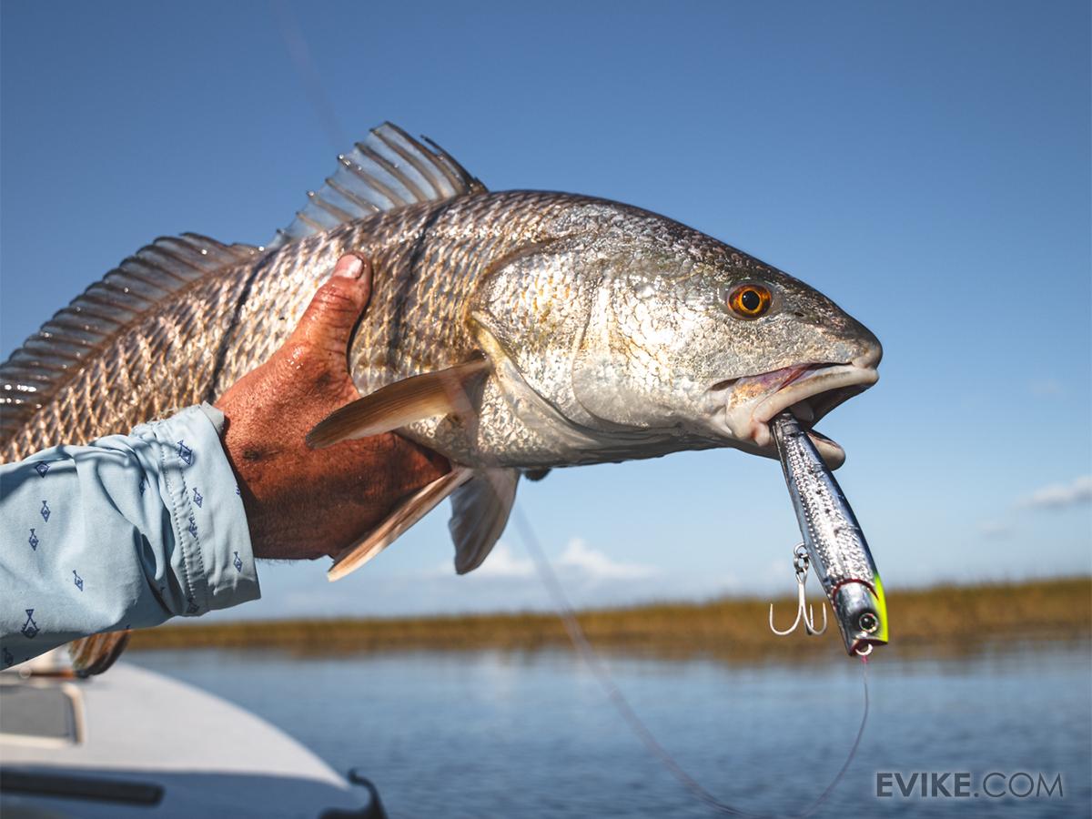Features Durable ABS construction Thickened body wall and 1.2mm wire-through harness Open mouth and gill produce panicked splashes and gurgles on the water's surface Vibrant ABS Laser Impact design cause light to reflect in all directions captivating fish near and far Weighted for distance casting Ideal body shape for flight stability and accuracy Pre-rigged with 2x #4 treble hooks Get ready to add a deadly new weapon to your tackle box - the ultimate hybrid pencil-popper style bait. Designed for anglers who live for the heart-pounding, adrenaline-fueled thrill of topwater predation. The Salt Pencil 110F introduces anglers to more than just an easy dog-walking action, the open mouth and gill produce even more panicked movement for predators to key in on as it splashes and gurgles on the water's surface. Featuring Daiwa's vibrant Laser Impact design, the unique structures within the durable ABS plastic cause light to reflect in all directions captivating fish nearby and drawing fish from afar. Do not be wary of larger or toothier fish, the Salt Pencil features a thickened body wall and 1.2mm wire-through harness, allowing anglers to throw this bait for all manner of inshore gamefish. At .65 oz rigged and 110mm length, the Salt Pencil has the weight for distance casting and ideal body shape for flight stability and accuracy.