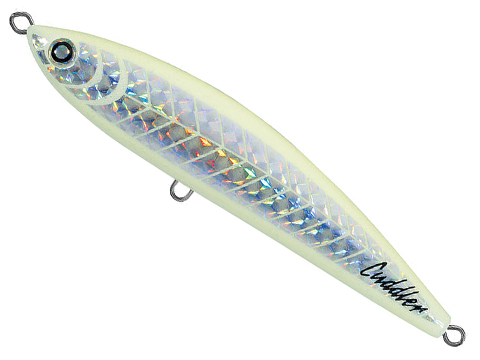 The Saltiga Cuddler is weighted in the rear to add distance and maintain stability during the cast, even with heavy braid. A counterweight in the head of the lure moves freely left to right causing the spiral swimming pattern while The wing-like shape of the Cudder causes upward lift as the bait pierces the air, maximizing casting distance.