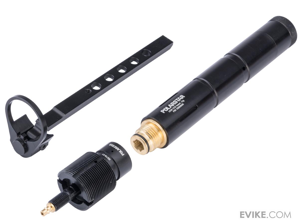 With the PolarStar UGS (Universal Gas Stock) you can now get the performance advantage of a HPA system without needing to be tethered to a remote air rig and still retain the likeness and function of a traditional adjustable stock. The UGS for the HK417 follows the same internal design as the standard UGS for M4/M16 series rifles but features a wider regulator body to interface with the larger diameter of the HK417 and G28 receiver extension. It can be used with any of the PolarStar cylinder conversion kits which are compatible with the VFC HK417 or G28 series such as the F2, F1 or JACK and is compact enough that it can also be used with other similar HPA cylinder systems on the market.