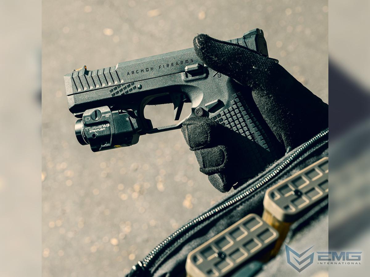 At EMG we loved the design and concept of the Archon Type B for how good it feels to shoot. We wanted to work closely with Archon to replicate each and every aspect of what made the real firearm great and construct as accurate of a training replica as we are capable of. Everything from the ultra-low bore axis, the short stroke barrel, the AF-Speedlock system, the dual recoil spring rod, and the ergonomics were accurately recreated. The EMG Archon Type B feels great in hand with its solid, heavy duty polymer frame and the machined aluminum slide. Great attention to detail has been given to this pistol to ensure everything is as close to 1:1 as possible.