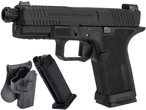 EMG has furthered their collaboration with Salient Arms International with the long awaited EMG BLU. Designed closely with the geniuses at SAI, the EMG / SAI BLU is designed to be as close to the real thing as possible offering shooters and enthusiasts the most realistic training analog available. Featuring a durable polymer frame, machined aluminum slide and barrel assembly and interchangeable backstraps, the EMG / SAI BLU not only looks like its real deal cousin, it feels like it as well. Authentic roll marks and branding top off the look, making it almost impossible to differentiate the 6mm version, from the 9mm version.