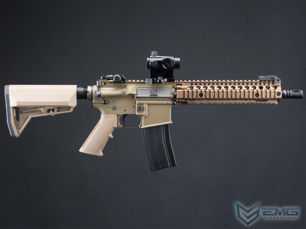 Evike Manufacturing Group (EMG) is the R&D division of Evike.com which specializes in high end training and custom weapons. EMG works directly with the real firearm manufacturers to make accurate, high quality training versions of their weapons. With professional military & law enforcement training in mind, EMG strives to make sure each firearm is true-to-spec in form and function as possible. Individually hand assembled and quality control tested right here in the USA, great care is taken under the strict scrutiny of EMG technicians to ensure each gun will stand up to the rigors of real training.