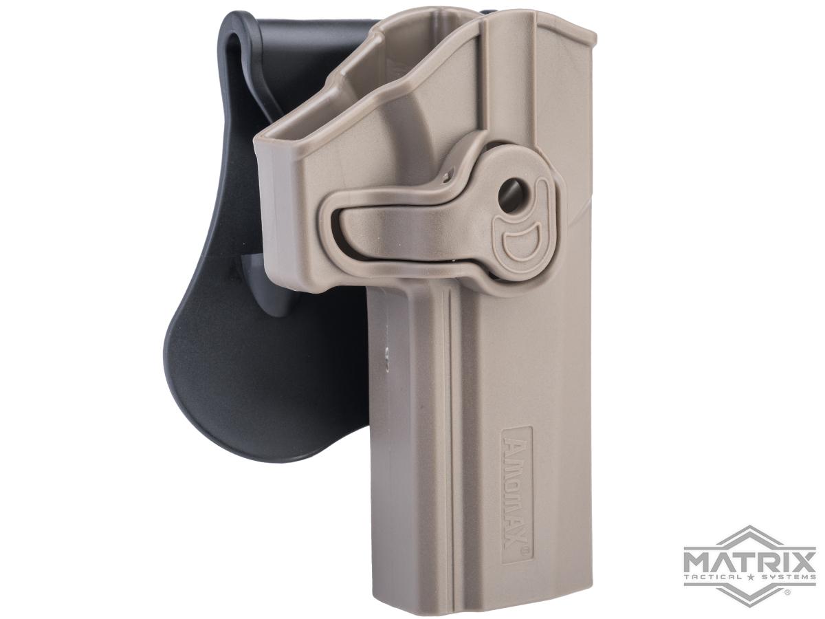 This holster is manufactured in collaboration of Matrix Tactical Systems and a manufacturing facility that produces real steel fire-arm holsters. The Matrix Group brings you an injection molded hard shell Glock style holster with trigger lock specifically designed for airsoft pistols using the same manufacturing process as real steel holsters. It is fully compatible with SIG Sauer ProForce P320 airsoft sidearms. It may be compatible with other brands of P320 airsoft pistols as well.