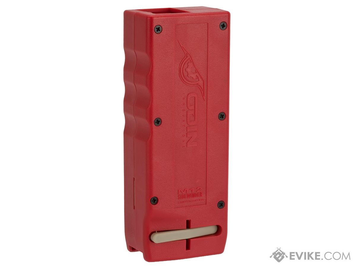 The M12 Sidewinder is an essential piece of gear for every airsoft player's kit. With the quick spin of a crank, almost any M4 mid-cap magazine can be fully loaded in under 5 seconds. The compact size of the M12 Sidewinder perfectly fits inside any double M4 mag pouch to easily be carried into the field. The capacity of this speed loader allows you to load twelve mid caps before needing to refill. Designed by an airsoft player for the players, the M12 Sidewinder is the last speed loader you'll ever need.