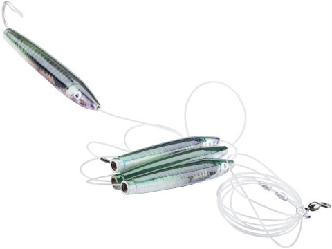 Hook Size: 10/0Test Fluorocarbon: 150lbsCrane Swivel: 250lbs