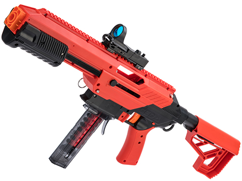 Designed for quick assembly and easy take down, CEDA is the worlds first modular foam blaster with its revolutionary quick swap upgradeable assembly. The quick release shell is held together by two receiver pins to give you easy access to the internal components at the heart of the blaster. This magazine fed, pump-action blaster gives you an edge over your competition with its enhanced piston and air nozzle for vastly superior velocity and range. The modular stock and Picatinny rail system allows you to customize your blaster to your preference.