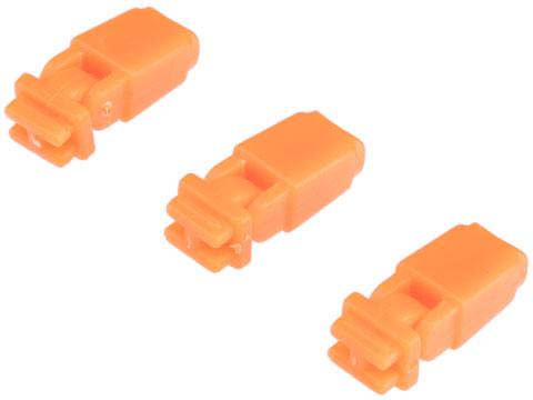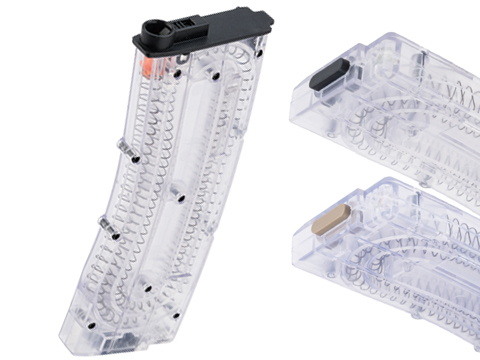 Our new enhanced magazine follower is a jointly designed with Deranged Airsoft. It keeps the pressure of the spring concentrated in line with the bb stack instead adding sideways pressure to the bb stack and against the walls of the magazine bb channel. This new follower design greatly improves the bb feeding speed and consistency and completely prevents BBs from sliding past the follower and creating a jam.