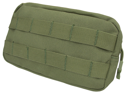 "This is a great pouch to have on your rear waist. I have this fitted to my ALICE rig belt and it fits perfectly! I purchased this because its dimensions are perfect for my double drum magazine. There are two zippers so it's easy to access no matter if you're left or right handed. Although I have never used it for storing any other items, it is a fairly deep bag and this zippers come about half way down so feel confident enough to put multiple small items inside.