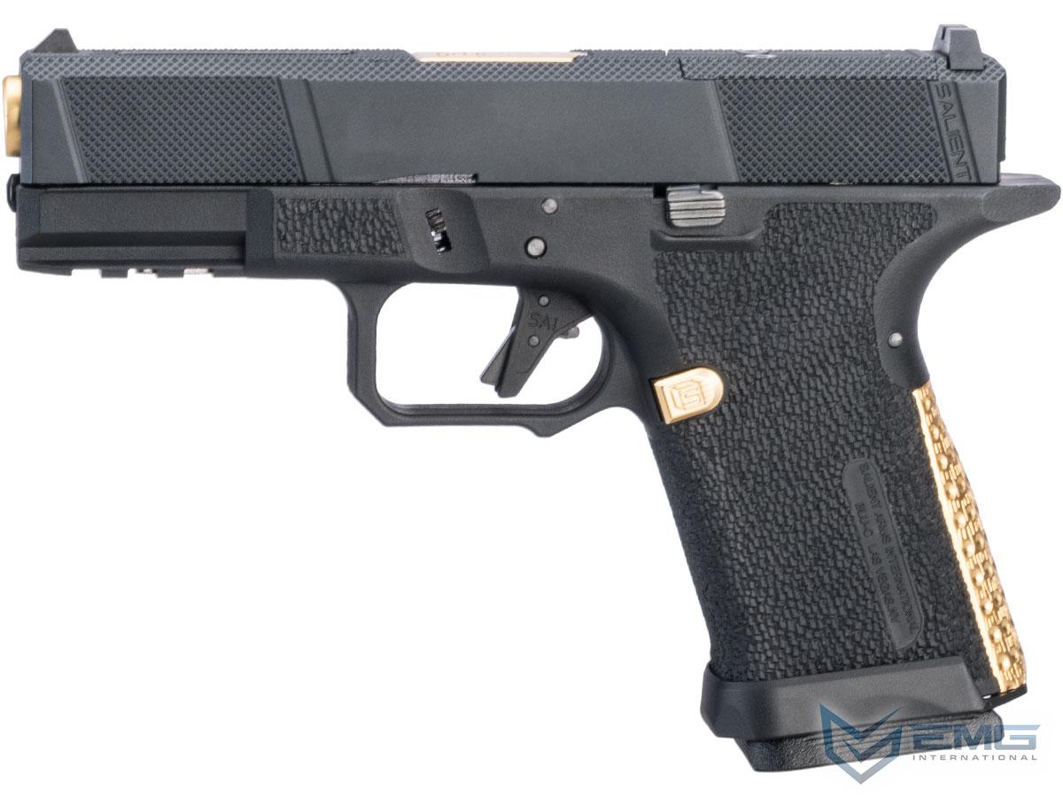 EMG has furthered their collaboration with Salient Arms International with a new pistol as the platform. Designed closely with the geniuses at SAI, the EMG / SAI Tier One Utility Package is designed to be as close to the real thing as possible offering shooters and enthusiasts the most realistic training analog available. Using the popular EMG Salient Arms International BLU Compact as the base, the Tier One Utility Package Pistol features a machined aluminum slide with hyper-aggressive front, rear, and top knurling to greatly improve grip no matter the situation. The Titanium Nitride styled box fluted barrel from Salient Arms comes standard with this pistol. Authentic rollmarks and branding top off the look, making it almost impossible to differentiate the 6mm version, from the 9mm version.