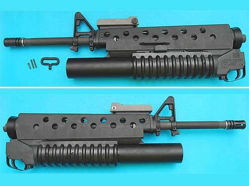 • M203 long type barrel mount grenade launcher with CNC metal barrel.