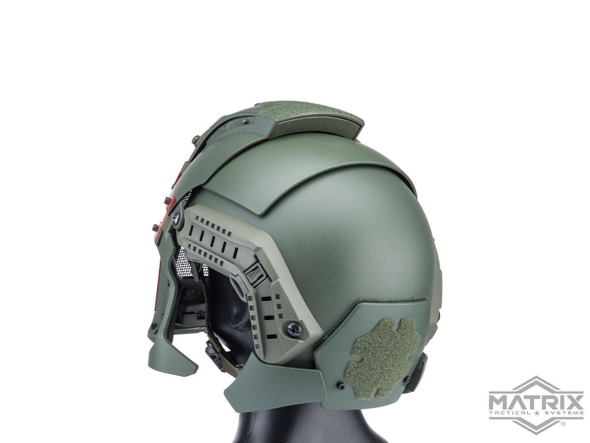 In a galaxy relatively close to this one... The Matrix Medieval Iron Warrior helmet system provides complete face protection attached to a comfortable and familiar helmet base. Every space warrior needs a helmet to defend themselves from bumps and scrapes and hits, and this helmet has everything covered. When the battle is over and you find yourself standing atop the bodies of your fallen enemies, you can stand proudly knowing this helmet saw you through to victory. When the hero needs to speak, worry not, with the press of a button the helmet slides open, allowing you to communicate with your battle brethren.