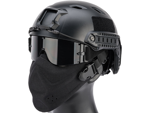 Shooting goggles (sold separately) are required to be worn with this mask to achieve full face protection. Buyer assumes full responsibility and liability.