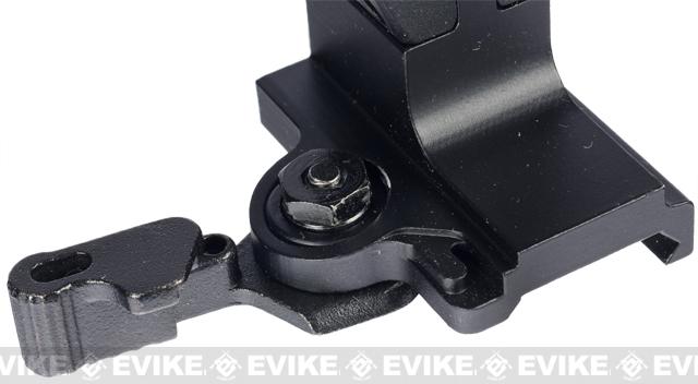 However, the QD mount doesn't lock correctly onto my Echo 1 M4 style rifle. This mount seems more suited for ARs where the top rail is molded/cast into the reciever and not screwed on the top. The Echo 1's rail is slightly larger than say the rail on my G&G body rifle. I had to loosen the screw on the mount in order to actually lock it onto the rifle, and even then the mount sat canted to the right ever so slightly because the rail is too wide to fit properly inside the mount's grooves.