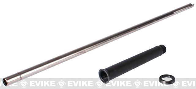 " Great barrel and outer barrel set. Installed it in an open bolt SCAR converted from a closed bolt. I was able to pick off opposing players from across the field with no problem with this installed. I have the Angel Custom V-bucking for under 370fps.