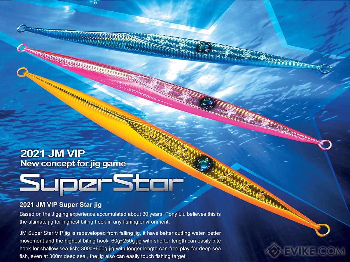 JM Super Star VIP jigs are based around a falling jig design, its shape allows it to cut through the water effortlessly while its enticing colors and movements encourage fish to strike. Whether you are fishing the shallows near the surface or if you are 300m down in the depths of the ocean, JM will have a jig to fit your needs.