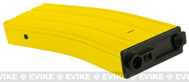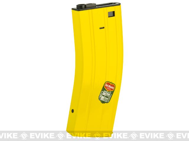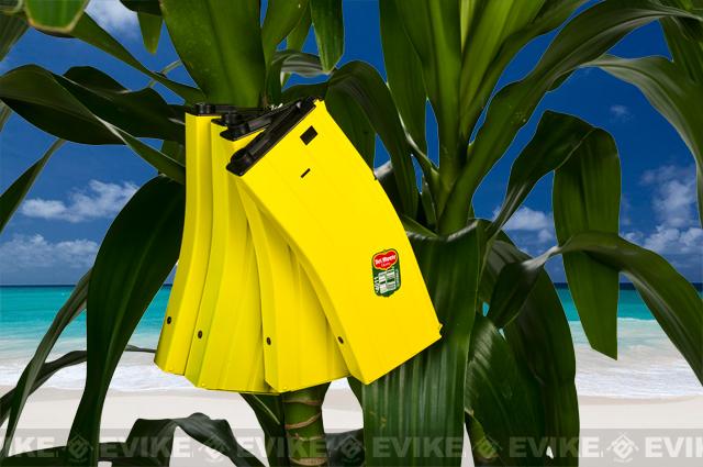 Banana sticker, tree, and tropical beach not included.The Matrix Banana magazines are superb feeders featuring advanced pull-cord flashmag internals and tactical Banana externals. Every Banana mag is designed to provide excellent performance, high durability, maximum visibility, and the ability to satisfy your hungry M4's appetite. The Bright yellow Banana tactical casing can be tactically utilized to distract the opposing force so while you play the role of the tactical decoy, your allies may swiftly move in to claim victory; go teamwork! If you happen to be in the jungle and find a banana tree, you may utilize the Banana mag as a form of camouflage to help you blend into your surroundings (disclaimer: may attract monkeys).