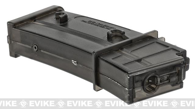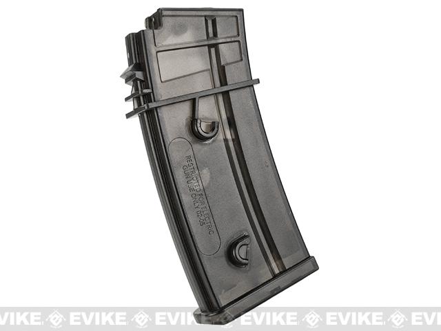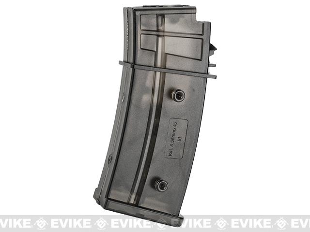 These 6mmProShop G36 FlashMags by UFC pack quite a punch with their impressive 300rd capacity. They feature the real G36 interlocking tab design, so it's easy to carry more than one mag outside of a pouch. Their durable translucent polymer material can take quite a beating and also allows you to see how many rounds you have left. These mags are a great choice for anyone who uses a G36 out on the field.