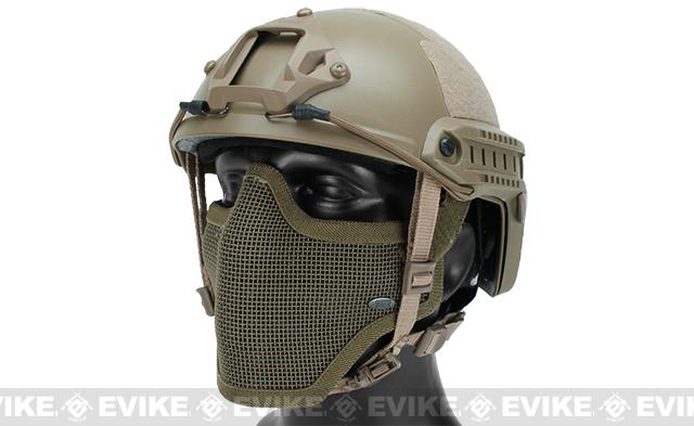 This package includes the high speed FAST type helmet and 6mm ProShop Striker steel mesh face mask, which provides low profile, comfortable protection for your lower face. The mesh design cuts down on fogging in your eye protection and allows for a more effective cheek weld, allowing better use of weapon mounted optics.