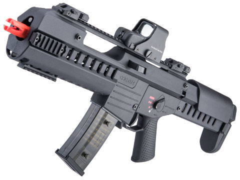 The GSG G14 is among the most technological advanced AEG rifle on the market with cutting edge internal and external features. The GSG G14 AEG features a realistic electric blowback system to simulate recoil. Additional features include an Electronic Fire Control System which helps cut down on jams / gear lock by cutting power to the gearbox when a battery approaches low voltage levels. Other features includes a 7 position retractable stock, integrated carrying handle, ambidextrous selectors, flip-up sights, functional bolt catch, integrated heat sink, quick change spring gearbox, easy take down, mock silencer / tracer unit ready, scope ready, attachments ready and much more!
