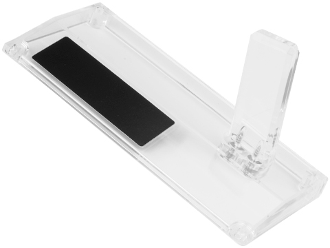 The Onyx series of display stands are built specifically to show off your favorite Airsoft pistols. Constructed of high grade acrylic the stands are not only exceedingly durable but maintain their polished shine and make for a stunning centerpiece. This will also work with double stack pistols, GLOCKs, M9, Hi-capa, Sig Sauer and other pistols, but will have play room (can be reinforced with rubber bands).