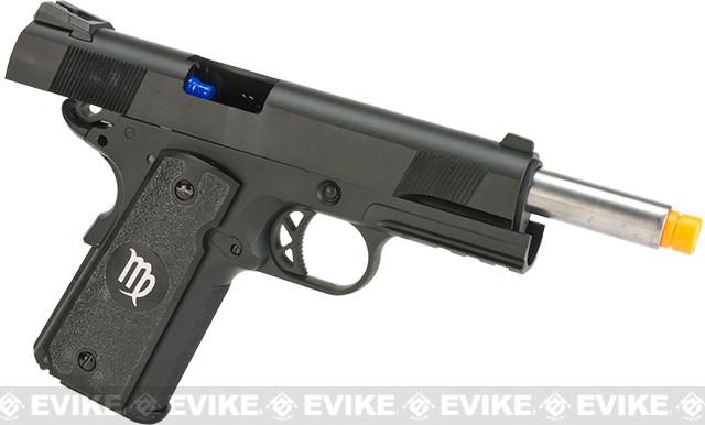 The Evike.com custom shop turned to these ancient astral symbols as our inspiration for our latest line of custom Airsoft pistols, the Evike.com X Angel Custom Nostradamus series of 1911 pistols. Using three of our most popular 1911 platforms, the WE-Tech KB tactical 1911, the WE-Tech Stainless 1911 and the Armorer Works Custom Molon Labe 1911A1, the Evike.com Custom Shop paired each ones of these pistols with a set of precision CNC machined Angel Custom Tac-Glove 1911 grips. Each pistol model is paired with the grips whose coloration lends itself to the most striking appearance. Regardless of color, every set of Angel Custom Tac-Glove zodiac grips is machined from aluminum alloy, anodized in a variety of colors and is laser engraved with individual zodiac signs on each panel. Layered into the machined channels are die cut sheets of high grit laminate ensuring that you will have a firm grasp on the pistol, no matter the conditions.